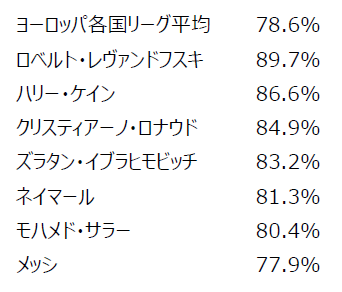メッシの成功率が低いのは意外でした。キックのバリエーションも豊富ですし、パネンカ(※)で決めたシーンも少なくない印象でした。